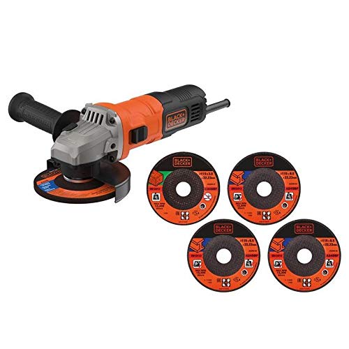 BLACK+DECKER 115mm 710W Compact Corded Angle Grinder, with 5 Cutting Discs, Cutting Guard, & Grinding Guard, BEG010A5-GB