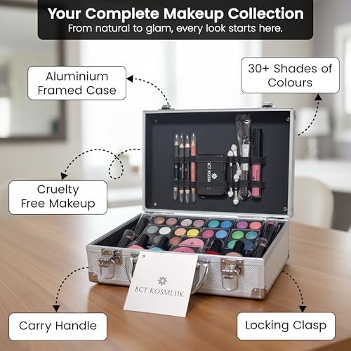 BCT-Kosmetik 52 Makeup Set with Travel Vanity Box Set Professional Carry & Storage Train Case Beauty Makeup Cosmetic & Tools for Gift Travel Make Up Carry Box Christmas