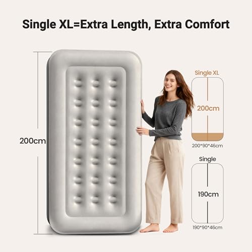 OlarHike Single Airbed XL, Inflatable Air Mattress with Built-in Pump, Blow Up Bed, Self Inflating Folding Guest Air bed with Flocked Surface For Camping & Home Use, 200cm L x 90cm W x 46cm H(Black)