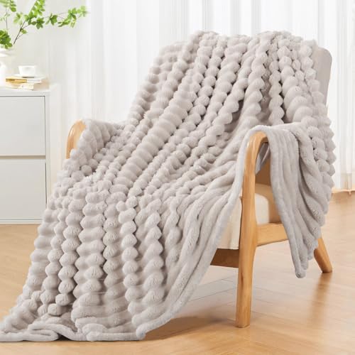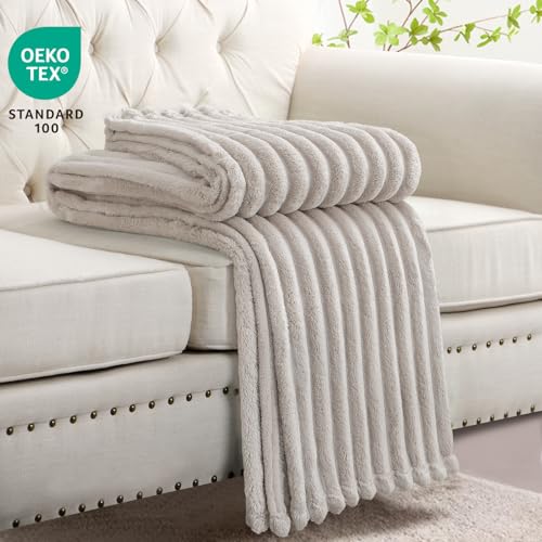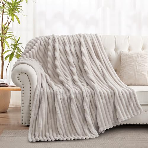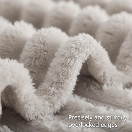 RUIKASI Fleece Throw Blanket for Sofa – Single Fluffy Beige Throws for Sofas Large, Soft Warm Blanket Throw for Couch, Luxury Decorative Ribbed Bed Blanket 130x150cm