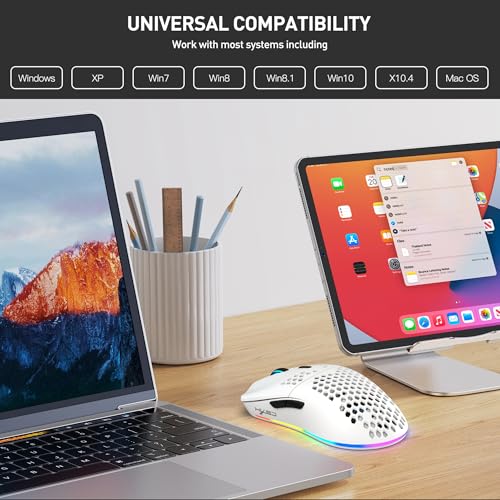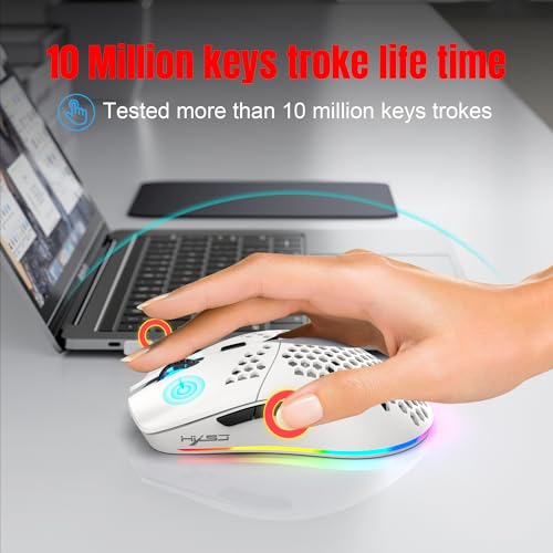 [Ergonomic Design for All-Day Use] The ergonomic honeycomb shell offers a secure grip and comfort during long sessions. Suitable for FPS, MOBA, RPG, and office work, this mouse combines versatile functionality with a sleek modern design in an elegant white finish.
