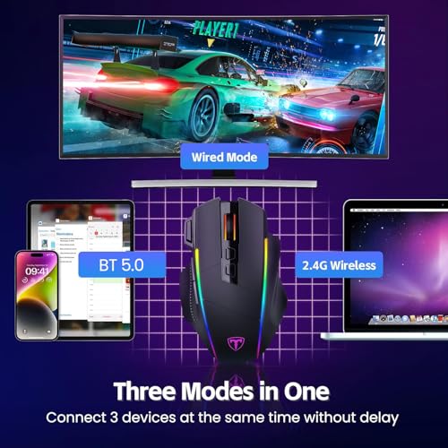 Wireless Gaming Mouse, Tripe-Mode 2.4G/USB-C/Bluetooth Mouse Up to 10,000DPI, RGB Backlit, Ergonomic Mouse with 8 Programmable Buttons, Rechargeable Wireless Mouse for Laptop, PC, Mac Gamer-Black
