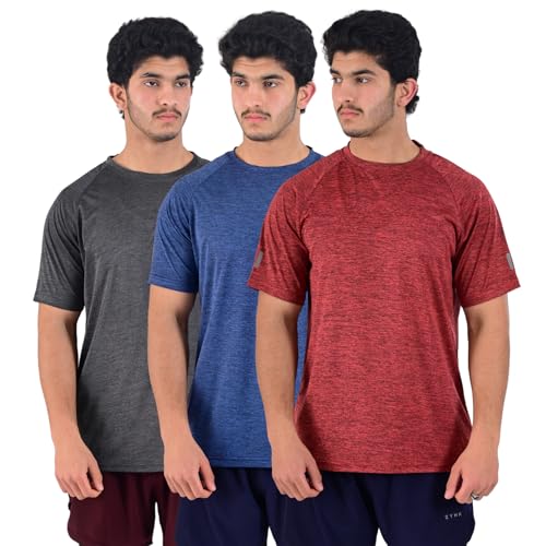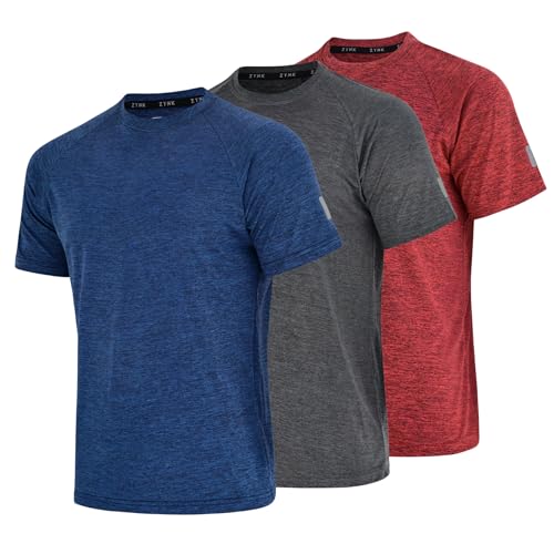 Zynk® Pack of 3 Mens T Shirt Workout Gym Sports Short Sleeve Shirts Men with Reflective Details, Breathable Quick Dry Running Top Men Moisture Wicking Activewear Gym Top, Mens T Shirts Multipack S-4XL