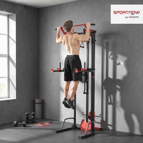SPORTNOW Power Tower with Lat Pull Down Machine, Pull Up Bar, Dip Station and Push Up Bar, Adjustable Height Multi-Function Power Pack for Home Gym Strength Training, 300kg Capacity