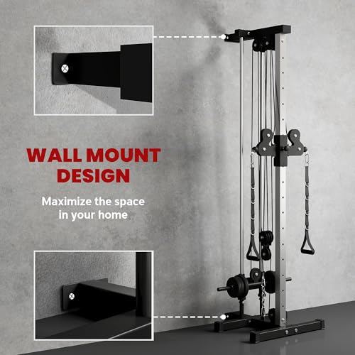 Wall mount space saver: Attaches to the wall at the top and bottom for added support and stability and to ensure the unit stays in place while in use. Compact design, this gym cable machine takes up only a little space in your home.