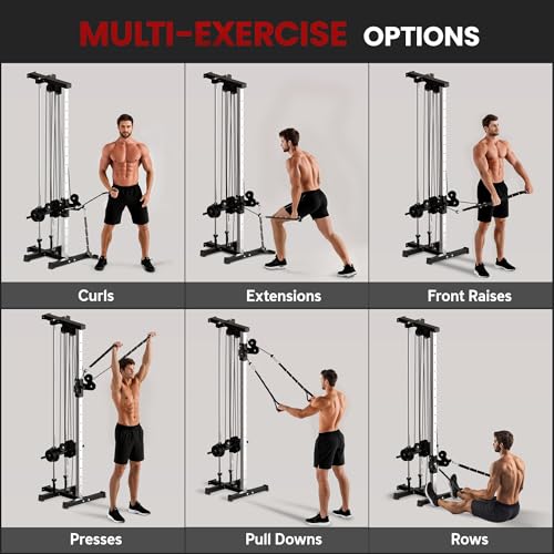 Multi-exercise options: Build and sculpt your muscles with the cable machine home gym, providing many ways for you to perform your back, shoulder and chest. You can accomplish presses, pull-downs, rows, curls, extensions, front raises and more.