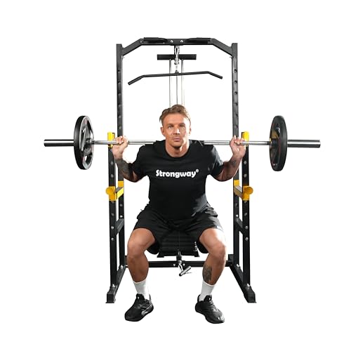 Strongway Half Power Rack with 88.5KG Weight Stack and Pulley System – All-in-One Home Gym Squat Rack for Strength and Functional Training