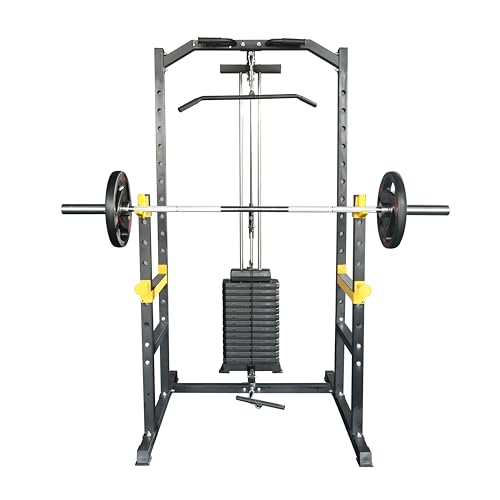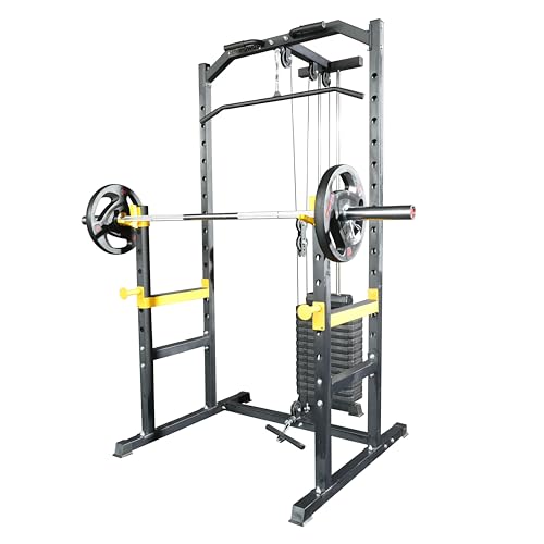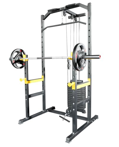 FULL BODY WORKOUT STATION – Perform squats, bench press, shoulder press, deadlifts, lat pulldowns, rows, curls, tricep pushdowns, and more all in one rack
