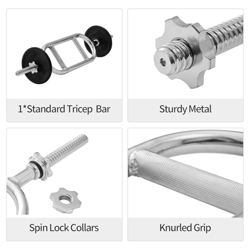 【𝗗𝘂𝗿𝗮𝗯𝗹𝗲 𝗦𝗼𝗹𝗶𝗱 𝗦𝘁𝗲𝗲𝗹 𝗖𝗼𝗻𝘀𝘁𝗿𝘂𝗰𝘁𝗶𝗼𝗻】:Crafted from heavy-duty solid steel, this tricep weight bar is built to withstand intense strength training sessions. The chrome-plated surface resists deformation, offering long-lasting durability that makes it a reliable addition to your home gym.