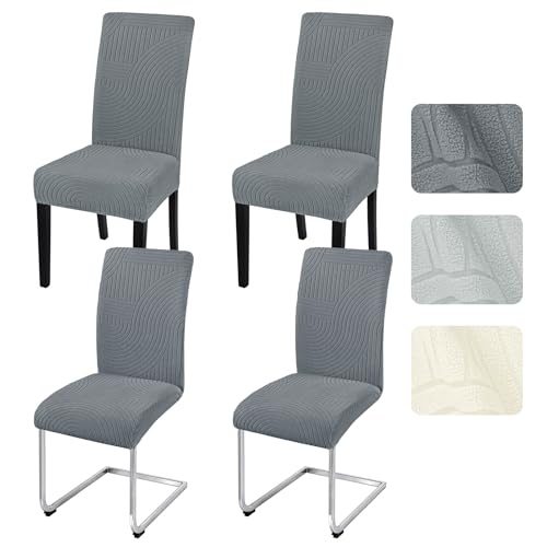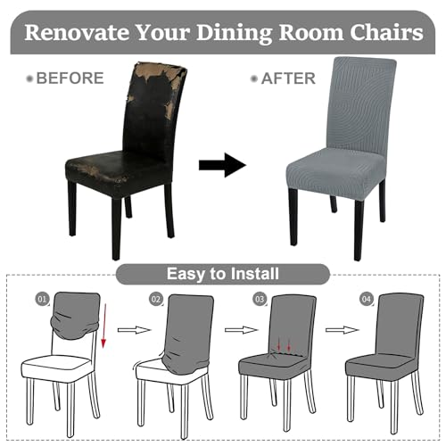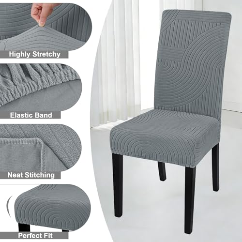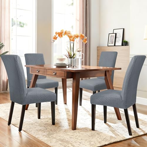 Alishomtll Dining Chair Covers Set of 4 Stretch Streaks Chair Slipcovers for Dining Chairs Jacquard Elastic Removable Washable Dining Room Chair Protector for Kitchen Hotel Banquet (Dark Grey, 4 pcs)
