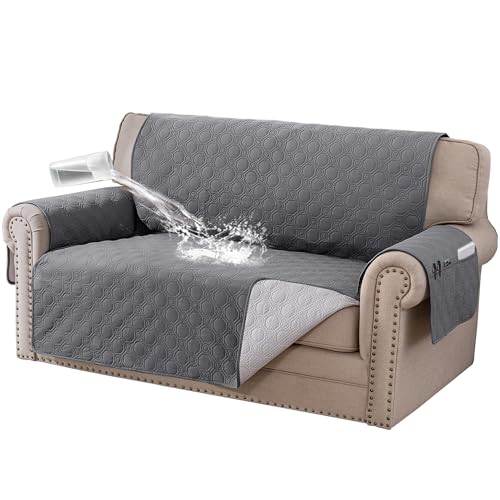 BellaHills Sofa Cover 100% Waterproof Sofa Covers 2 seater Non-Slip Sofa Slipcovers Couch Covers Washable with Elastic Strap Sofa Protectors from Pets Seat Width 47″(2 Seater, Grey)
