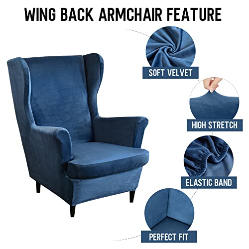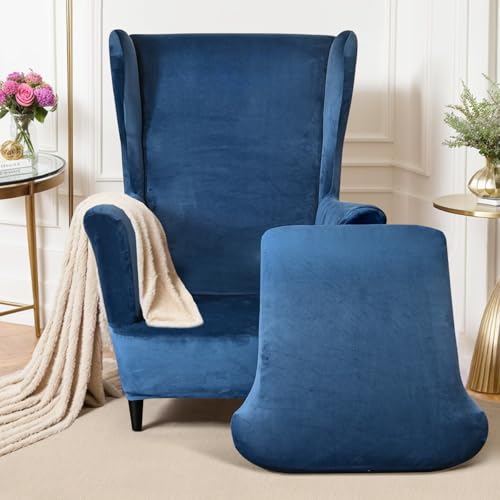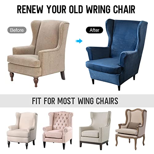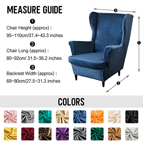 Mingfuxin Wingback Chair Covers 2 Piece Set Stretch Wing Chair Cushion Sofa Slipcover, Removable Velvet Wing Back Armchair Slipcovers Furniture Protector for Living Room Bedroom Hotel