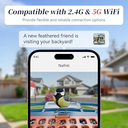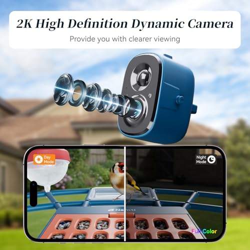 【2.4GHz/ 5GHz Wifi & 2K Live View Camera 】Nafnti technology is newly upgraded, we support 2.4GHz and 5GHz, don’t worry about connectivity anymore! With a 160° wide-angle lens and color night vision, birdwatching with a wider field of view and works both day and night, Even in low-light conditions, bird camera also ensures clear and vivid live broadcasts, images and videos.