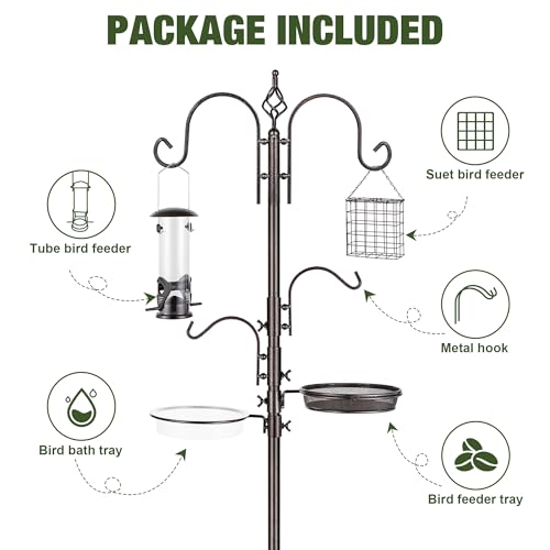 Urban Deco Bird Feeding Station Kit Bird Feeder Pole Multi Wild Bird Feeder Hanging Station Kit with Metal Suet Feeder Bird Bath for Attracting Wild Birds