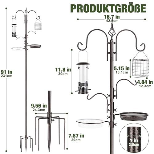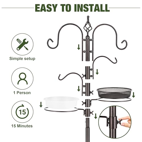 ❤Premium Quality Bird Feeding Station Kit: Rust resistant, sturdy steel pole stands 91 inches tall and 22 inches wide. Easily adjust components to any desired location by loosening and tightening wing nuts by hand. No tools required! Forked base prong adds stability and permits easy placement. Just step down to plant. Mesh tray and water bowl detach for easy cleaning