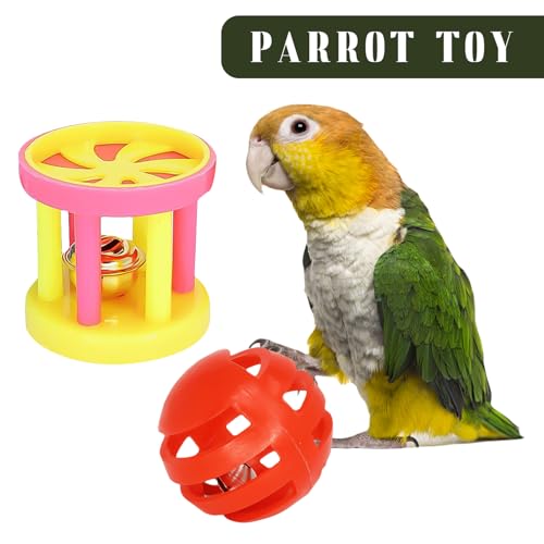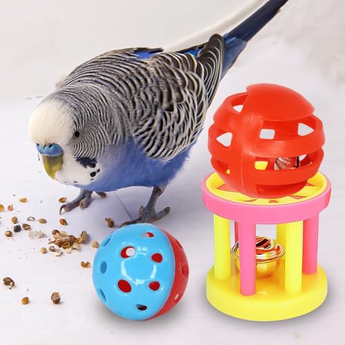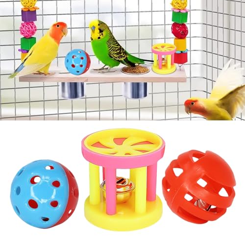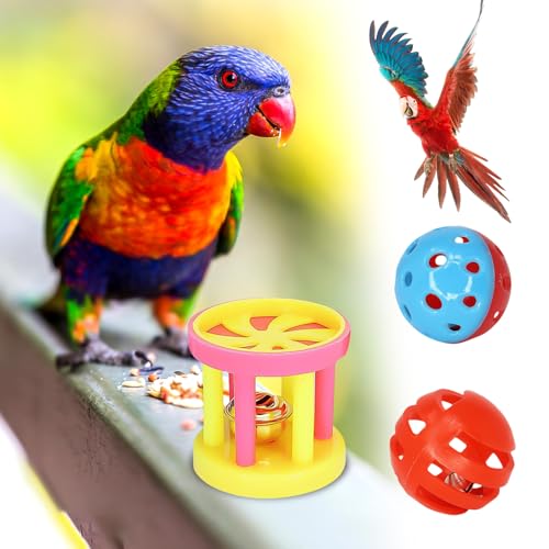 3pcs Feeding Ball Pet Parrot Toy Interactive Colorful Ball With Bells Pet Bird Chew Toy Training Bell Balls for Parrot Parakeets Budgie Cockatiel
