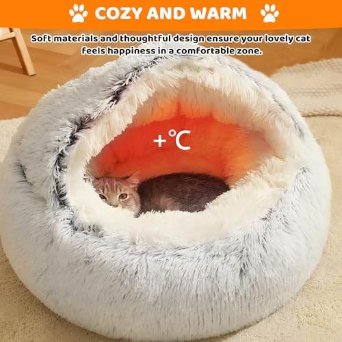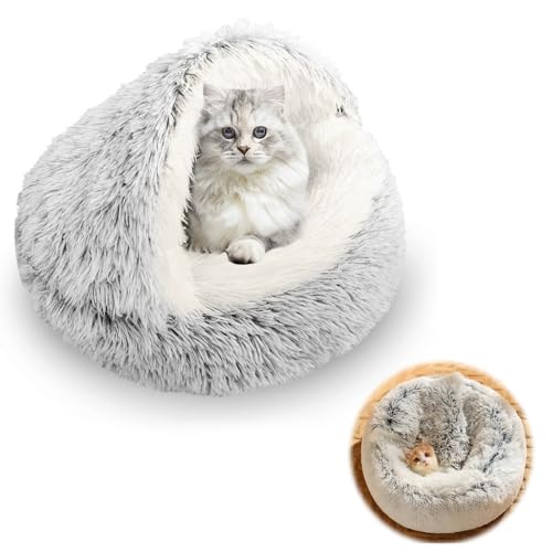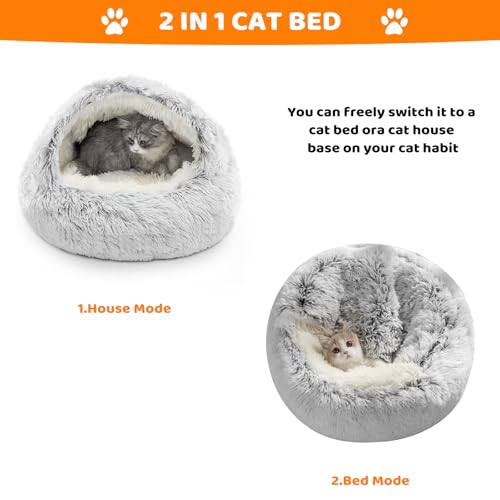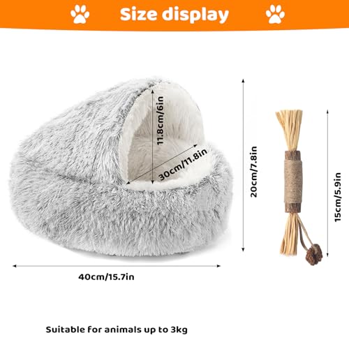 Cat Bed, Kitten Cave Beds for Indoor Under 3kg Fluffy Pet BED Indoor Cat Cave Hooded Beds with Raffia chew stick