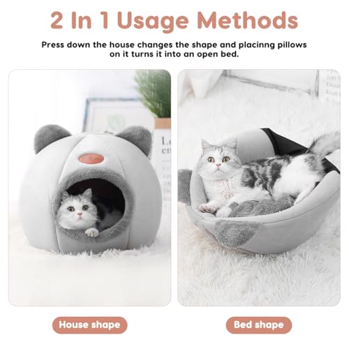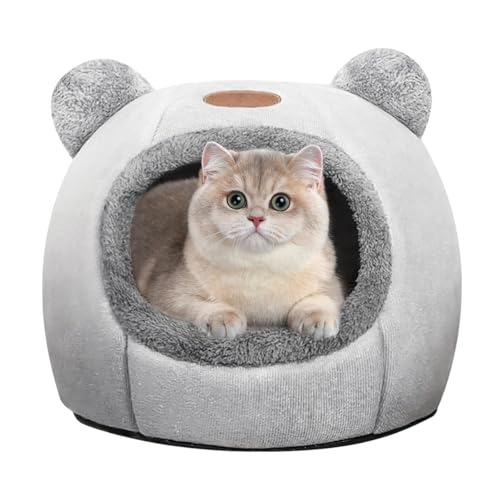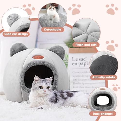 Cat Beds for Indoor Cats, Cozy Cat Tent House Igloo with Ears, Soft Fluffy Kitten Cave with Removable Cushion, Foldable Warm Pet Bed for Small Cats & Puppies